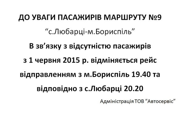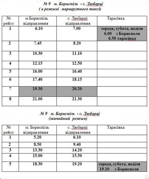 | № рейсу | м.Бориспіль | с.Головурів |